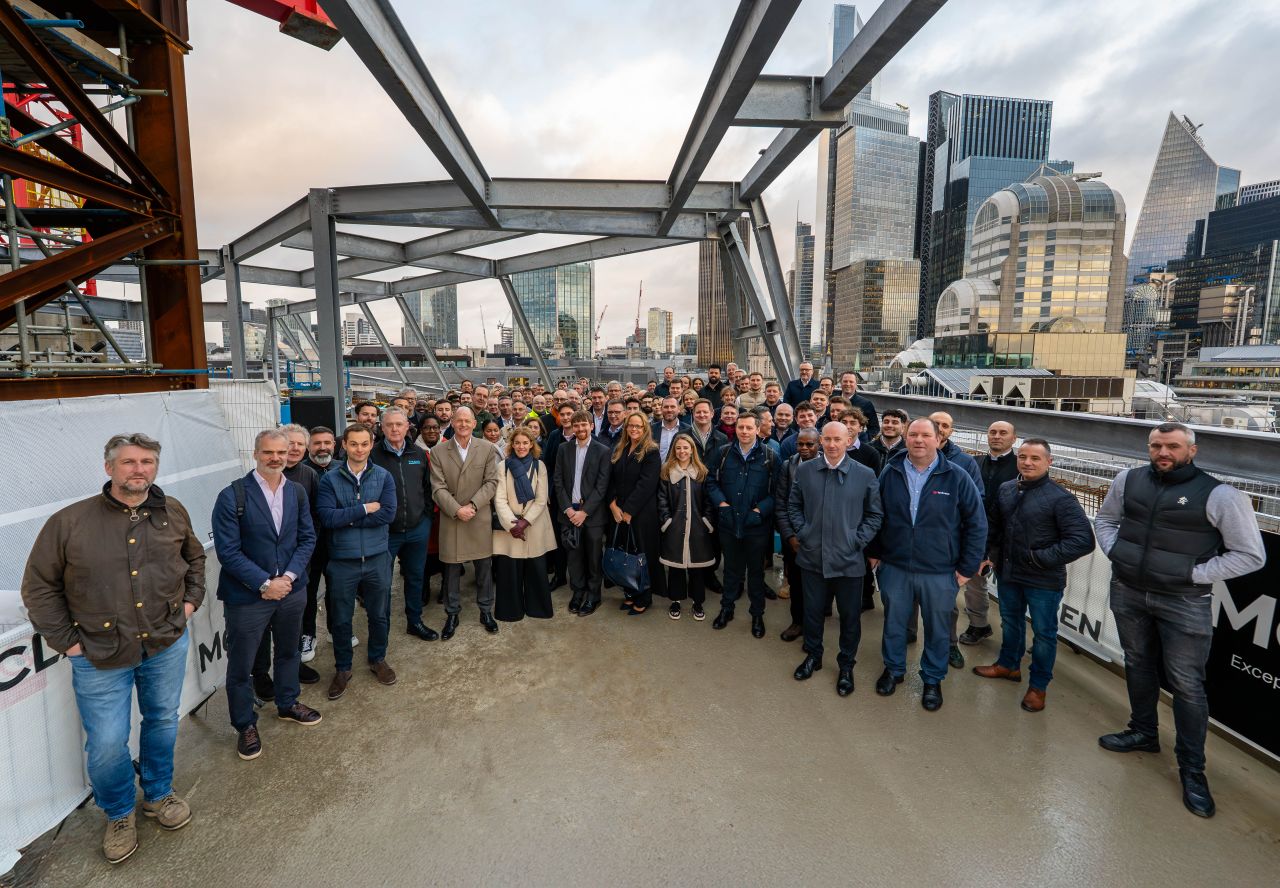 Joint venture developers Places for London and Helical plc were joined by funders HSBC and main contractor McLaren Construction in putting the final bolt in the steel structure as part of a traditional “topping out” event.
